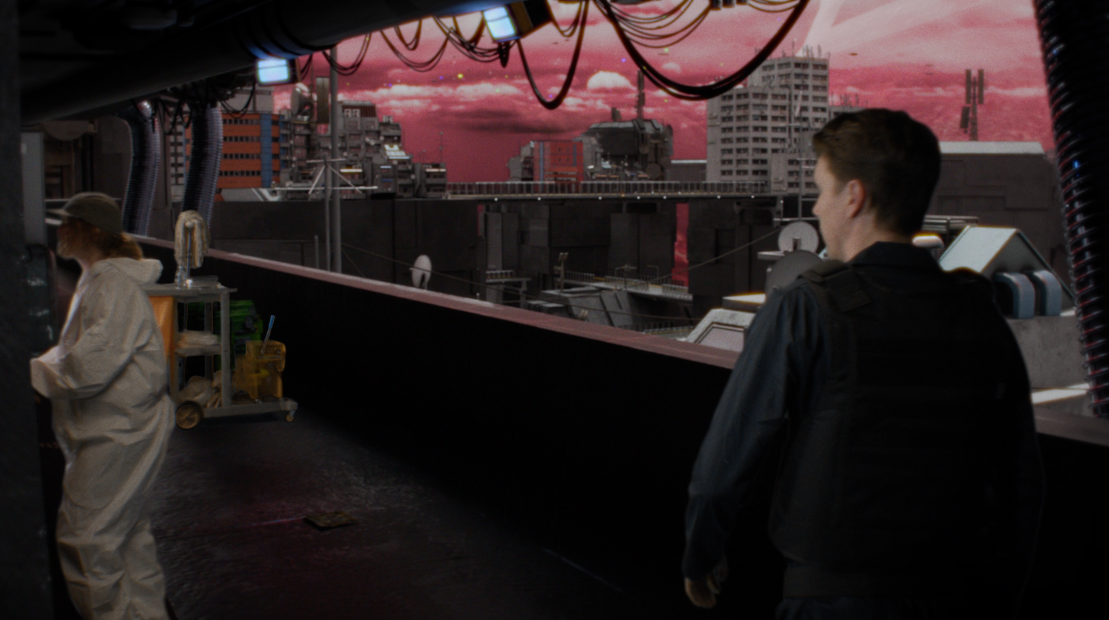 I wanted the sky to feel like it was suffocating you in red smog, and closing in on itself like a collapsed lung. The city itself was inspired by soviet architecture I saw while visiting Eastern European cities like Bratislava, mixed with the texture and feeling of my home city, Salt Lake.