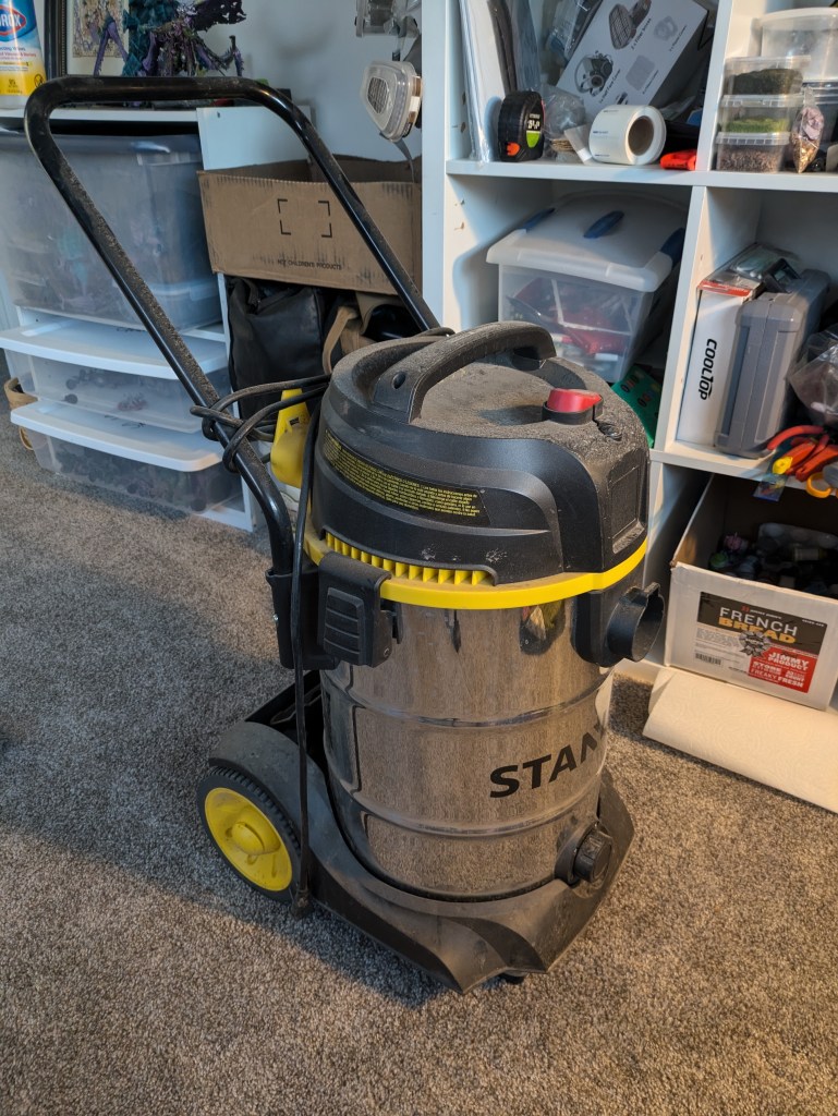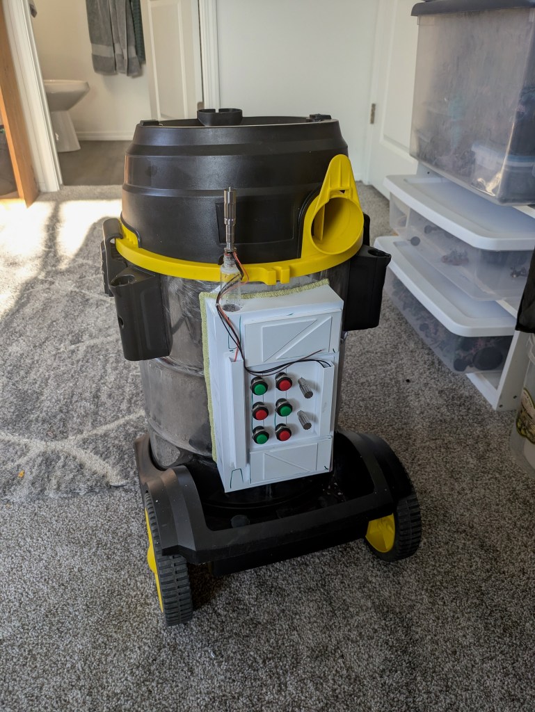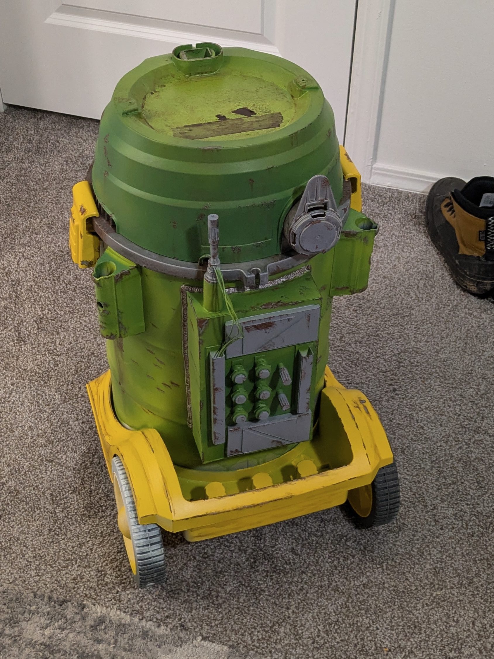 Once used for hot-tub repair projects by my Father-in-law, FL8-CO found his way to me after his retirement. I knew, even then, that all he needed was a fresh coat of paint and some doo-dads, and he could find new life as my cleaning repair droid in the first scene of Indication of Quixan.
